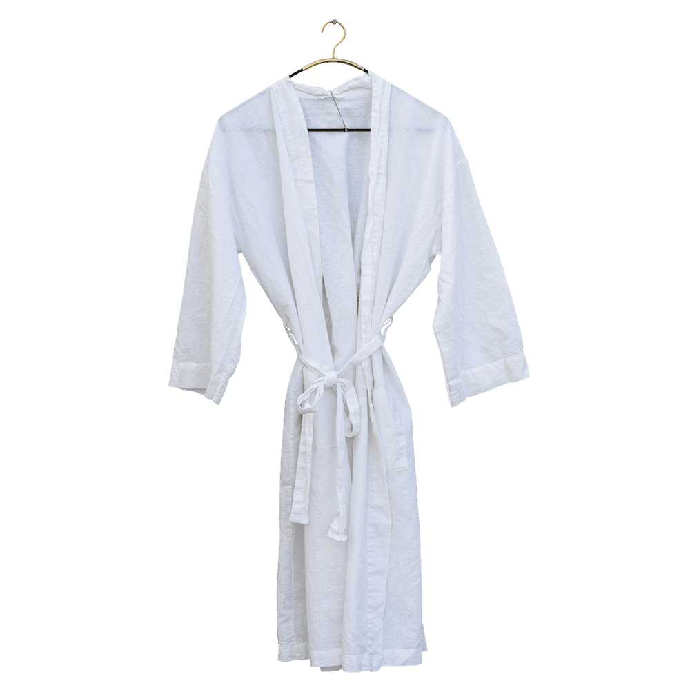 Light and cool bathrobe, perfect for summer use, with two big pockets and a belt. 50% linnen and 50% cotton, available in S/M and L/XL. 50% Linen 50% Cotton