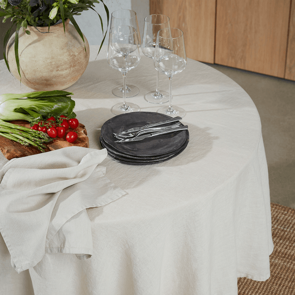 - Absolutely stunningly beautiful is this round linen cloth of a full 2m in diameter, this is a small piece of jewelry in the home with its fine raw linen color and structure, a cloth to enjoy for many years. 60% Linen 40% Cotton